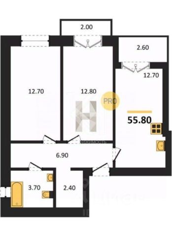 Общая площадь 56,2 кв.м., жилая площадь 33 кв.м. (19+14), комнаты изолированные, кухня 11,8 кв.м., в большой прихожей площадью 7,7 кв.м оборудованы места для хранения, санузел совмещенный 4,0 кв.м., счетчики на газ, воду и электроэнергию, остекленная лоджия в спальне, балкон на кухне, высота потолков 2,7 метра. Автономное отопление.