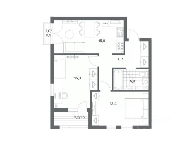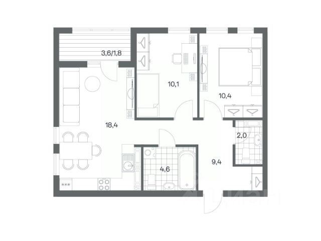 Продается квартира площадью 59.1 м² на 6 этаже 4 секции в Гагарина 30 от компании ГК "ТРЕСТ". Площадь кухни 16.2 м². Жилой комплекс комфорт-класса "Гагарина 30" расположен в Ленинградском районе Калининграда на улице Юрия Гагарина. Жилой комплекс включает в себя три корпуса высотой 9-18 этажей. Срок сдачи намечен на 1 квартал 2028 года. Жилой комплекс расположен в географическом центре города Калининград. Он знаменит Музеем янтаря, Королевскими воротами, Верхним и Нижним прудами, районами Альтштадт и Лебенихт. Из жилого квартала за 10 минут можно добраться до парков Тихий и Кальтхёфер. В жилом комплексе 457 квартир, из них 55% двух- и трёхкомнатные. Доступны варианты с просторными кухнями-гостиными, мастер-спальнями и кладовыми. На первых этажах расположены квартиры с приватными открытыми террасами. На верхних этажах лоджии с холодным остеклением, панорамными и увеличенными окнами. Высота потолков первого и последнего этажей - 3 м (кроме первого корпуса), остальных 2,72 м. Интерьеры МОП-ов выполнены в минималистичном стиле с контрастными, дополняющими друг друга материалами. Благодаря использованию светлых оттенков, природных текстур и декоративного освещения, пространство имеет большое количество света. В лифт-холле предусмотрена зона ожидания с мягкой мебелью. Почтовые ящики вынесены в тамбур, а рядом со стойкой домофона предусмотрена консоль для сумок. Дизайн-проект разработан студией Right design. Для удобства автомобилистов созданы подземные паркинги: на 125 машиномест и кладовые помещения. В паркинг можно будет спуститься на лифте комфортно людям, безопасно автомобилям! Продается 2-комнатная квартира на улице Юрия Гагарина в городе Калининград.