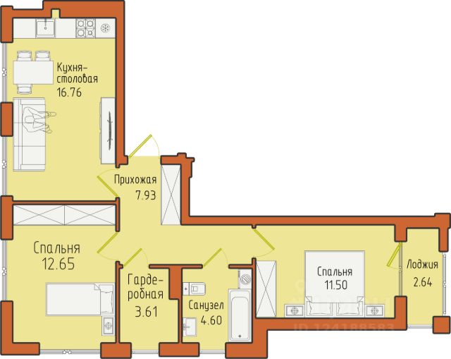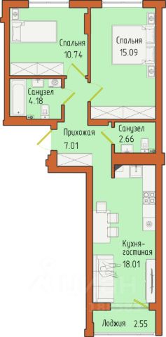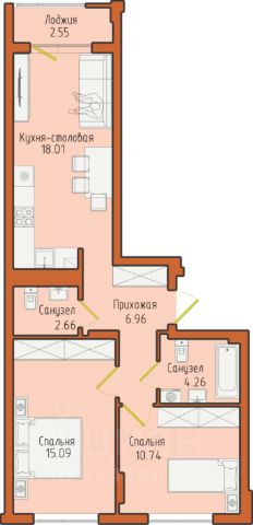• кухня - 10,5 кв. м.; с выходом на большую лоджию и дополнительным панорамным окном;
