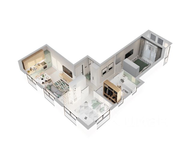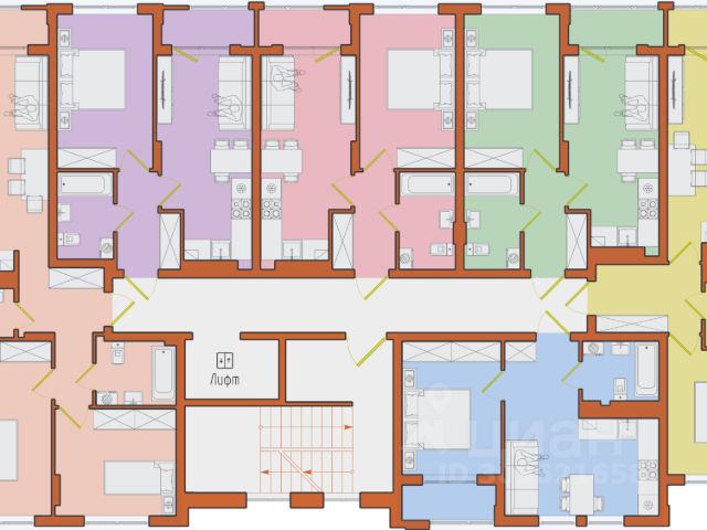 Апартаменты расположена на втором этаже шестиэтажного кирпичного дома. Дом повышенной комфортности 2021 года. В апартаментах функциональная планировка: