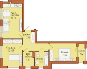 • спальня 13,5 кв. м. с большим панорамным окном,