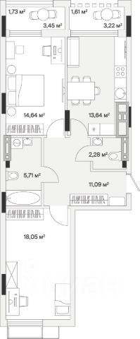 Продается просторная двухкомнатная квартира. Общая площадь квартиры 65,6 кв. м, продуманная планировка, которая максимально эффективно позволит использовать пространство помещений и создать любой интерьер: просторный холл, кухня-столовая 13,81 кв. м с выходом на лоджию, спальни 14,44 с выходом на французский балкон и 14,48 с выходом на лоджию, гостевой санузел и ванная комната. Высота потолков 2,7 метра. Автономное отопление, что обеспечит низкие коммунальные платежи. Предчистовая отделка.