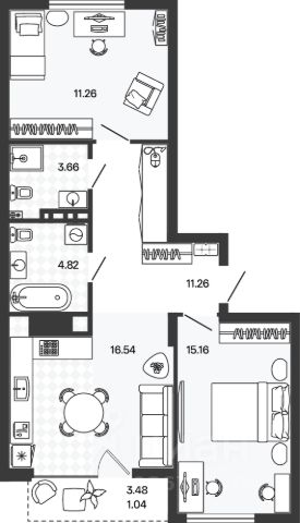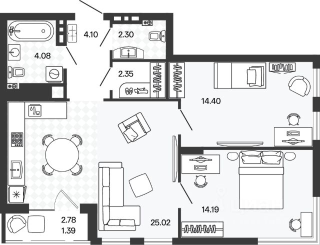 Продается просторная двухкомнатная квартира. Общая площадь квартиры 65,4 кв. м, продуманная планировка, которая максимально эффективно позволит использовать пространство помещений и создать любой интерьер: просторный холл, кухня-столовая 13,81 кв. м с выходом на лоджию, спальни 14,48 с выходом на французский балкон и 13,81 кв. м., гостевой санузел и ванная комната. Высота потолков 2,7 метра. Автономное отопление, что обеспечит низкие коммунальные платежи. Предчистовая отделка.