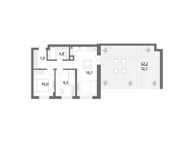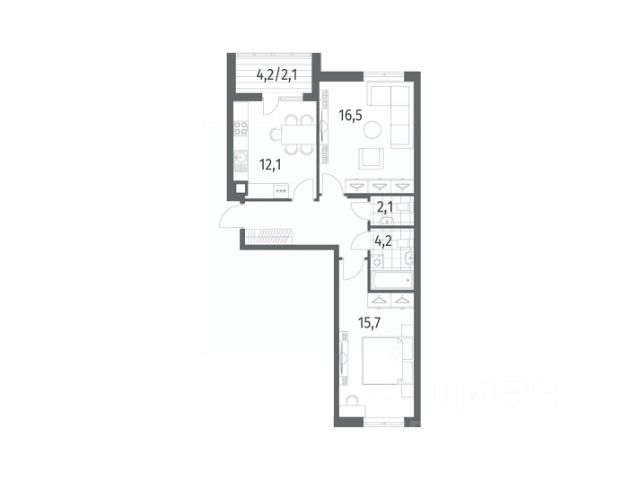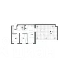 Продается квартира площадью 64.2 м² на 7 этаже 2 секции в River Park от компании ГК "ТРЕСТ". Площадь кухни 19.7 м².