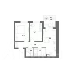 Продается квартира площадью 52.9 м² на 1 этаже 1 секции в River Park от компании ГК "ТРЕСТ". Площадь кухни 17.8 м².