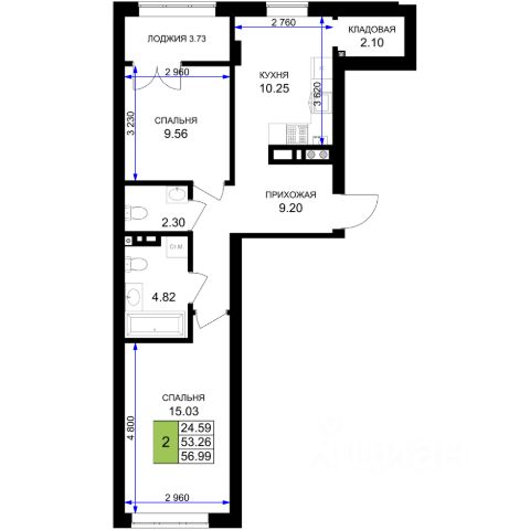 Продается квартира площадью 63.7 м² на 2 этаже 1 секции в River Park от компании ГК "ТРЕСТ". Площадь кухни 24.2 м².