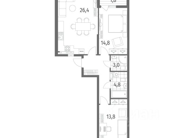 Продается квартира площадью 62.9 м² на 8 этаже 1 секции в Дом на Красной от компании ГК "ТРЕСТ". Площадь кухни 17.7 м². Жилой комплекс комфорт-класса "Дом на Красной" расположен в Центральном районе Калининграда на пересечении улиц Красная и Псковская. Жилой комплекс включает в себя два дома высотой 8 этажей. Срок сдачи намечен на 4 квартал 2026 года. Жилой комплекс "Дом на Красной" имеет среднюю комфортную этажность. Благодаря геометрическим формам, заложенным в архитектурный облик зданий, их конфигурация образует почти закрытую дворовую территорию. Фасад домов выполнен из комбинированных материалов (декоративная штукатурка и плитка под кирпич) в динамичном стиле с выступающими и утопленными частями и панорамными окнами. Архитектуру жилого комплекса подчеркивает декоративная подсветка фасада. В каждом подъезде созданы помещения для хранения колясок, велосипедов и спортинвентаря, которыми могут пользоваться все жильцы. Планировочные решения предусматривают квартиры с просторными кухнями-гостиными, мастер-спальнями и гардеробными. В квартирах, которые передаются покупателям без отделки ("Серый ключ"), предусмотрены открытые террасы с видом на Школьное озеро или красивый внутренний двор, панорамные окна, лоджии с холодным остеклением, потолки высотой 2,72 м. Для удобства автомобилистов созданы подземные паркинги: на 136 машиномест и кладовые помещения. В паркинг можно будет спуститься на лифте комфортно людям, безопасно автомобилям!