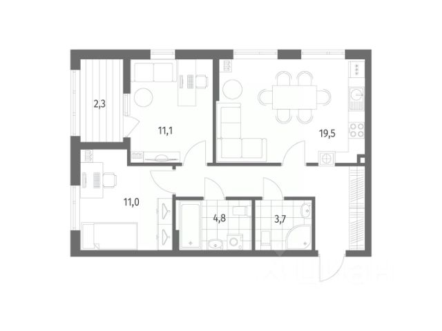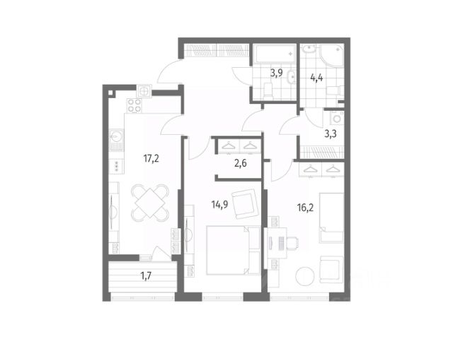 Продается квартира площадью 61.5 м² на 4 этаже 2 секции в Дом на Красной от компании ГК "ТРЕСТ". Площадь кухни 17.2 м². Жилой комплекс комфорт-класса "Дом на Красной" расположен в Центральном районе Калининграда на пересечении улиц Красная и Псковская. Жилой комплекс включает в себя два дома высотой 8 этажей. Срок сдачи намечен на 4 квартал 2026 года. Жилой комплекс "Дом на Красной" имеет среднюю комфортную этажность. Благодаря геометрическим формам, заложенным в архитектурный облик зданий, их конфигурация образует почти закрытую дворовую территорию. Фасад домов выполнен из комбинированных материалов (декоративная штукатурка и плитка под кирпич) в динамичном стиле с выступающими и утопленными частями и панорамными окнами. Архитектуру жилого комплекса подчеркивает декоративная подсветка фасада. В каждом подъезде созданы помещения для хранения колясок, велосипедов и спортинвентаря, которыми могут пользоваться все жильцы. Планировочные решения предусматривают квартиры с просторными кухнями-гостиными, мастер-спальнями и гардеробными. В квартирах, которые передаются покупателям без отделки ("Серый ключ"), предусмотрены открытые террасы с видом на Школьное озеро или красивый внутренний двор, панорамные окна, лоджии с холодным остеклением, потолки высотой 2,72 м. Для удобства автомобилистов созданы подземные паркинги: на 136 машиномест и кладовые помещения. В паркинг можно будет спуститься на лифте комфортно людям, безопасно автомобилям!