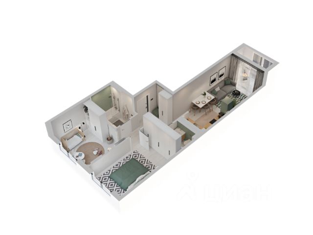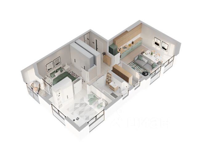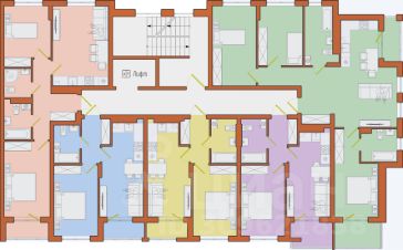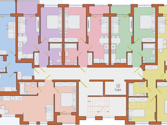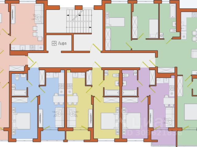 Апартаменты расположена на втором этаже шестиэтажного кирпичного дома. Дом повышенной комфортности 2021 года. В апартаментах функциональная планировка: