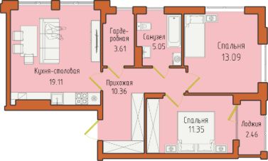 Купить 2-комнатную квартиру в кирпично-монолитном доме в поселке Отрадное города Светлогорска