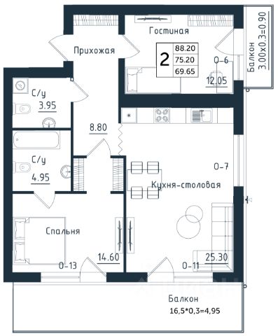 Продаётся 2-комнатная квартира в строящемся доме (Дом 2), срок сдачи: II-кв. 2026, общей площадью 88.2 кв.м., на 3 этаже. Новый жилой комплекс "Янтарные Сезоны" от Группы компаний "Модуль-Стройград" расположен по адресу: Калининградская обл., пгт Янтарный, ул. Советская.