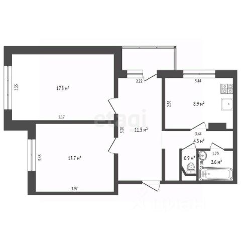 • ✅ Объект наибольшей площади: 58,2 м²