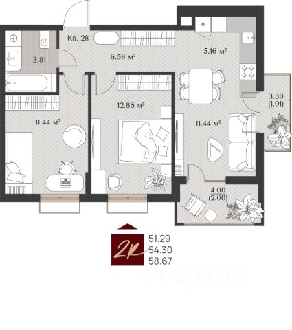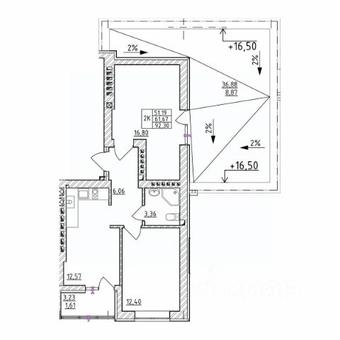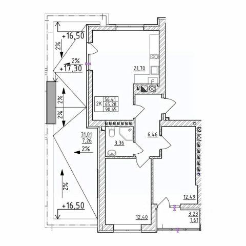 -Каждое помещение имеет продуманные пропорции, высота потолков 3 метра.