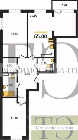 Квартира: 2 к 66,10 кв.м., 1 этаж в комплексе Резиденция, 1 очередь, корп.1, сдача: 2кв. , этажей: 5, адрес Пионерский г., Комсомольская ул., д. 19, Застройщик: Зеленый Город.