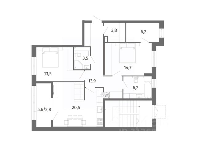 Продается квартира площадью 57.9 м² на 4 этаже 2 секции в Дом на Красной от компании ГК "ТРЕСТ". Площадь кухни 17.8 м². Жилой комплекс комфорт-класса "Дом на Красной" расположен в Центральном районе Калининграда на пересечении улиц Красная и Псковская. Жилой комплекс включает в себя два дома высотой 8 этажей. Срок сдачи намечен на 4 квартал 2026 года. Жилой комплекс "Дом на Красной" имеет среднюю комфортную этажность. Благодаря геометрическим формам, заложенным в архитектурный облик зданий, их конфигурация образует почти закрытую дворовую территорию. Фасад домов выполнен из комбинированных материалов (декоративная штукатурка и плитка под кирпич) в динамичном стиле с выступающими и утопленными частями и панорамными окнами. Архитектуру жилого комплекса подчеркивает декоративная подсветка фасада. В каждом подъезде созданы помещения для хранения колясок, велосипедов и спортинвентаря, которыми могут пользоваться все жильцы. Планировочные решения предусматривают квартиры с просторными кухнями-гостиными, мастер-спальнями и гардеробными. В квартирах, которые передаются покупателям без отделки ("Серый ключ"), предусмотрены открытые террасы с видом на Школьное озеро или красивый внутренний двор, панорамные окна, лоджии с холодным остеклением, потолки высотой 2,72 м. Для удобства автомобилистов созданы подземные паркинги: на 136 машиномест и кладовые помещения. В паркинг можно будет спуститься на лифте комфортно людям, безопасно автомобилям! Продается 2-комнатная квартира в ипотеку в новостройке в районе Центральный в городе Калининград.