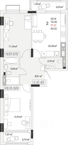 Квартира: 2 к 65,36 кв.м., 4 этаж в комплексе Аэро, 1 очередь, корп.A, сдача: 3кв. , этажей: 7, адрес Малое Исаково п., Первая ул., д. 1 корп 1, Застройщик: ГК Расцвет.