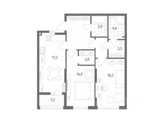 Продается квартира площадью 57.9 м² на 4 этаже 2 секции в Дом на Красной от компании ГК "ТРЕСТ". Площадь кухни 17.8 м². Жилой комплекс комфорт-класса "Дом на Красной" расположен в Центральном районе Калининграда на пересечении улиц Красная и Псковская. Жилой комплекс включает в себя два дома высотой 8 этажей. Срок сдачи намечен на 4 квартал 2026 года. Жилой комплекс "Дом на Красной" имеет среднюю комфортную этажность. Благодаря геометрическим формам, заложенным в архитектурный облик зданий, их конфигурация образует почти закрытую дворовую территорию. Фасад домов выполнен из комбинированных материалов (декоративная штукатурка и плитка под кирпич) в динамичном стиле с выступающими и утопленными частями и панорамными окнами. Архитектуру жилого комплекса подчеркивает декоративная подсветка фасада. В каждом подъезде созданы помещения для хранения колясок, велосипедов и спортинвентаря, которыми могут пользоваться все жильцы. Планировочные решения предусматривают квартиры с просторными кухнями-гостиными, мастер-спальнями и гардеробными. В квартирах, которые передаются покупателям без отделки ("Серый ключ"), предусмотрены открытые террасы с видом на Школьное озеро или красивый внутренний двор, панорамные окна, лоджии с холодным остеклением, потолки высотой 2,72 м. Для удобства автомобилистов созданы подземные паркинги: на 136 машиномест и кладовые помещения. В паркинг можно будет спуститься на лифте комфортно людям, безопасно автомобилям!