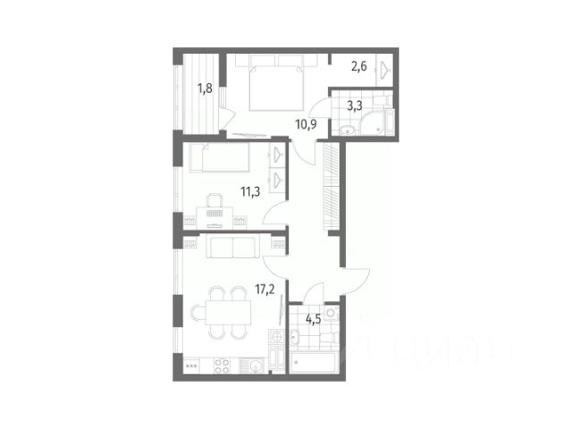 Продается квартира площадью 57.9 м² на 4 этаже 2 секции в Дом на Красной от компании ГК "ТРЕСТ". Площадь кухни 17.8 м². Жилой комплекс комфорт-класса "Дом на Красной" расположен в Центральном районе Калининграда на пересечении улиц Красная и Псковская. Жилой комплекс включает в себя два дома высотой 8 этажей. Срок сдачи намечен на 4 квартал 2026 года. Жилой комплекс "Дом на Красной" имеет среднюю комфортную этажность. Благодаря геометрическим формам, заложенным в архитектурный облик зданий, их конфигурация образует почти закрытую дворовую территорию. Фасад домов выполнен из комбинированных материалов (декоративная штукатурка и плитка под кирпич) в динамичном стиле с выступающими и утопленными частями и панорамными окнами. Архитектуру жилого комплекса подчеркивает декоративная подсветка фасада. В каждом подъезде созданы помещения для хранения колясок, велосипедов и спортинвентаря, которыми могут пользоваться все жильцы. Планировочные решения предусматривают квартиры с просторными кухнями-гостиными, мастер-спальнями и гардеробными. В квартирах, которые передаются покупателям без отделки ("Серый ключ"), предусмотрены открытые террасы с видом на Школьное озеро или красивый внутренний двор, панорамные окна, лоджии с холодным остеклением, потолки высотой 2,72 м. Для удобства автомобилистов созданы подземные паркинги: на 136 машиномест и кладовые помещения. В паркинг можно будет спуститься на лифте комфортно людям, безопасно автомобилям!