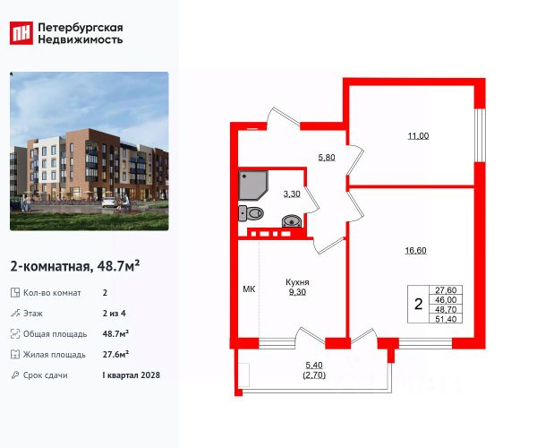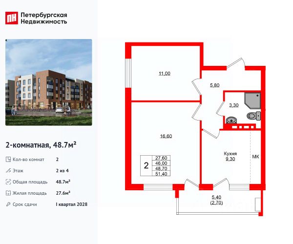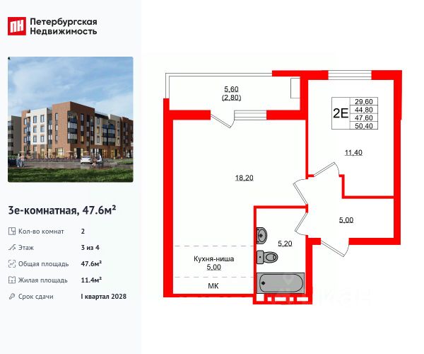 Продается уютная 2-комнатная квартира от застройщика в жилом комплексе "Кроны и Волны" в Зеленоградск. Удобная, классическая, функциональная европланировка, большая кухня-гостиная 22.6 м², вместительная прихожая 6.1 м². Общая площадь квартиры - 47.6 м², жилая 12 м², высота потолка 2.7 м. Квартира продается с отделкой "Серый ключ КиВ". Что особенного в ЖК "Кроны и Волны"? • Современный малоэтажный жилой комплекс • Дизайнерские детские площадки, зоны для спорта и активного отдыха, велодорожки • Помещения для колясок и велосипедов в каждой парадной • Неповторимые лесные пейзажи в непосредственной близости к побережью Балтийского моря • Концепция "Двор без машин"