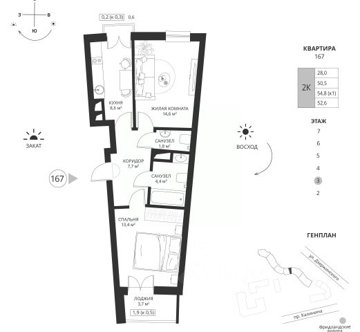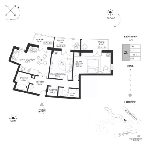 Двухкомнатная квартира с предчистовой отделкой в ЖК "Сиреневый бульвар" на 3 этаже. Общая площадь: 67.3 кв.м., жилая: 26.8 кв.м., площадь просторной кухни-столовой: 19 кв.м. Квартира угловая, очень светлая, естественная вентиляция при открытии окон. В квартире одна лоджия, один совмещенный санузел. Терраса представляет собой роскошную зону отдыха, где вы на свой вкус можете создать атмосферу комфорта и уюта. Высота потолков 2.7 м. Дом введен в эксплуатацию. Дом монолитный, многоподъездный, высотой 4 этажа. Квартира находится в 4-й секции в корпусе 1.1. На этаже 7 квартир. В подъезде 1 грузовой лифт. Начало строительства - 4 квартал 2022 года. Строительство завершено, дом сдан в 1 квартале 2024 года. Оформление сделки по договору купли-продажи. Жилой комплекс "Сиреневый бульвар" это 5 клубных 4-х этажных домов на 16 квартир и 9 домов с несколькими секциями. Вместе эти дома формируют собственное закрытое пространство с дворовыми территориями, спортивными и детскими площадками, местами отдыха и коммерческими помещениями. Дизайнерские входные группы и небольшие приусадебные участки квартир нижних этажей, обилие зелени, удобные зоны отдыха всё устроено с особым вниманием. Жителей комплекса ждут просторные квартиры комфорт-класса с огромными террасами, мастер-спальнями, гардеробными и кухнями-гостиными. В каждом доме предусмотрены места для хранения велосипедов, кладовые помещения на цокольных этажах. "Сиреневый Бульвар" позволит своим жителям получить все преимущества городского комфорта и максимум плюсов от жизни на природе. Для жителей и гостей предусмотрены парковочные места, вся территория оборудована круглосуточной системой видеонаблюдения. В шаговой доступности находятся детский сад, начальная школа и продовольственные магазины. Жилой Комплекс "Сиреневый Бульвар" - уникальный проект, расположенный в Калининграде - балтийской жемчужине, в городе с богатым прошлым, комфортным настоящим и радужным будущим. Именно Калининград место встречи России и Европы. Жилой Комплекс "Сиреневый Бульвар" находится в географическом центре города. Ленинградский район (бывшие Ротенштейн, Марауненхоф, Лип, Девау, Палве и Куммерау) это северная часть Калининграда, где в довоенные годы располагался Старый город. Жилой комплекс находится рядом с Верхним озером, Нижним прудом и ещё 12 городскими водоемами. Территория всего проекта занимает 21,9 гектаров и находится между улицами Арсенальная, Пехотная и 4-ой Большой окружной. Аккредитация в банках: ПАО "Газпромбанк", "Сбербанк России", ПАО Банк "ВТБ", ПАО "Промсвязьбанк", ПАО Банк "ФК Открытие". #ZsUwAc Продам 2-комнатную квартиру в новостройке с отделкой в Калининграде.