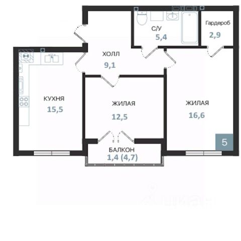 Кухня 15,3 м²