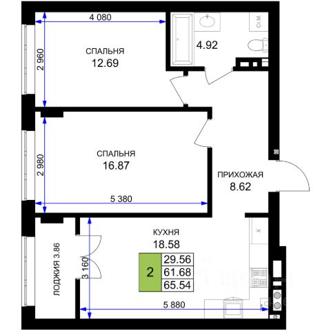 • ✓ В базе Циан 1,3 тыс. 2-комнатных квартир первичка в Гурьевске