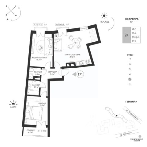 Жилой квартал "SEVEN" - Комплекс из семи 9-ти этажных домов - Современные и комфортные планировки - Класс энергоэффективности В (высокий) - Огороженная и охраняемая территория внутреннего двора - Полноценный пост охраны - Видеонаблюдение - Видеодомофоны с возможностью контроля доступа с смартфона - Отделка подъездов по дизайн проекту - Алюминиевые входные группы - Проходные подъезды - Качественные и безопасные входные двери - Бесшумные грузопассажирские лифты с остановкой в уровень земли и отделкой из нержавеющей стали - Качественные серый ключ - Автономное газовое отопление - Окна из цветного профиля - Лоджии остеклены (алюминиевые ограждающие конструкции) - Окна в пол и архитектурные балконы на верхних этажах - Современное благоустройство двора с детскими площадками, местами отдыха взрослых, площадка для стрит-бола и занятий спортом, обустроенная площадка для выгула собак. Сделайте ваш выбор в пользу высокого качества жизни. Сданный дом ( дом 1 ) : + Безналичный расчет + Рассрочка на 2 года + Ипотека под готовое жилье + Материнский капитал + Военная ипотека Строящийся дом ( дом 2 ) : + Субсидированная ипотека (IT-ипотека и семейная ипотека) + Материнский капитал + Военная ипотека Не упустите возможность приобрести жилье в ЖК "Seven". Ждем вашего звонка для получения дополнительной информации и организации просмотра. 2-комнатной квартиры первичка в районе Московский в городе Калининград.