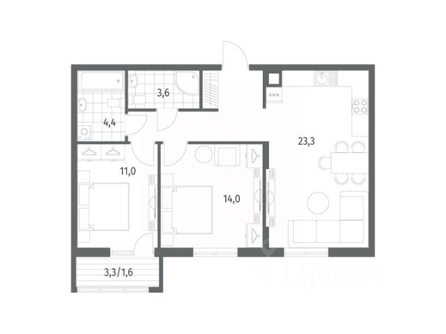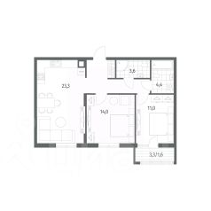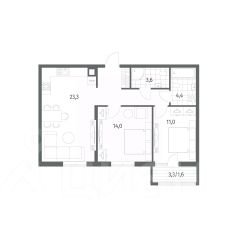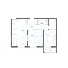Продается квартира площадью 65.7 м² на 1 этаже 1 секции в River Park от компании ГК "ТРЕСТ". Площадь кухни 23.3 м².