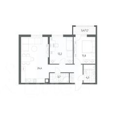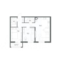 Продается квартира площадью 62.2 м² на 1 этаже 1 секции в River Park от компании ГК "ТРЕСТ". Площадь кухни 12.1 м².