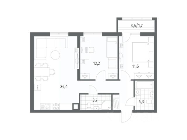 Продается квартира площадью 60.1 м² на 4 этаже 3 секции в River Park от компании ГК "ТРЕСТ". Площадь кухни 11.6 м².