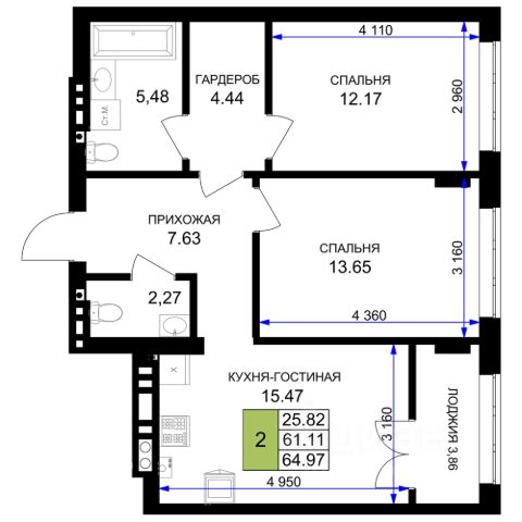 • ✓ В базе Циан 1,1 тыс. 2-комнатных квартир с ремонтом в Гурьевске