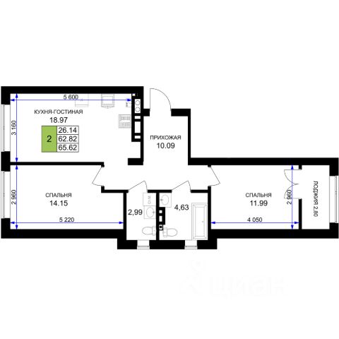 Квартира с шикарной планировкой! 2 изолированные спальни, большая кухня гостиная, большая панорамная лоджия.
