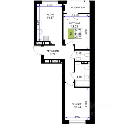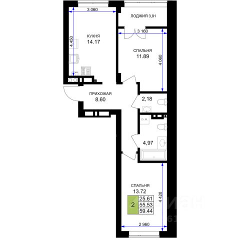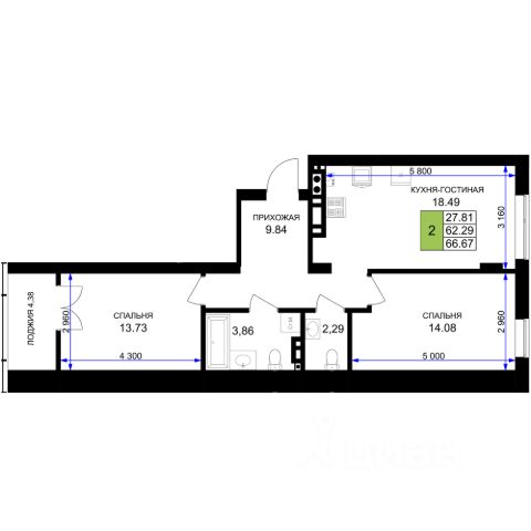 Продам 2х комнатную квартиру 58.47 кв м, в лучшем городе Гурьевске в современном Жилом Комплексе Включи!