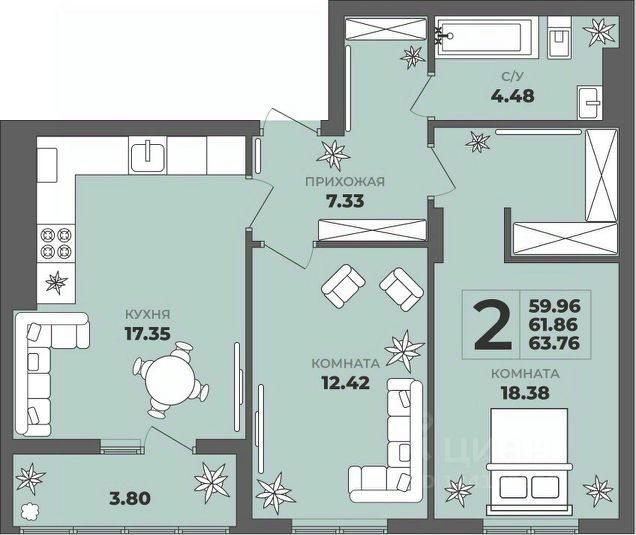 Продаётся 2-комнатная квартира в строящемся доме (Дом 1), срок сдачи: II-кв. 2027, общей площадью 63.48 кв.м., на 4 этаже. ЖК "ГРИНВУД". - Жилой комплекс из двух 8-ми этажных дoмoв - Комфортные и продуманные планировки - Kласc энepгоэффeктивнocти B (выcoкий) - Качественные серый ключ - Автономное газовое отопление. - Лоджии и балконы остеклены (алюминиевые ограждающие конструкции) - Бесшумные грузопассажирские лифты - Качественные и безопасные входные двери - Современное благоустройство двора с детскими и спортивными площадками, местами отдыха взрослых и детей - Ипотека в ВТБ, Банк Санкт-Петербург, Альфа-Банк, Банк Дом РФ ЖК "Гринвуд" находится в экологически чистой части бывшего Балтийского района. Сейчас к этой территории повышенный интерес: здесь нет крупных производств, много зелёных уголков, развитая социальная инфраструктура. Улучшается и транспортная доступность района. В шаговой доступности от ЖК расположена обширная зелёная зоной у озера Пеньковое. Тихое уютное место подарит отдых от городской суеты. При этом рядом находится вся необходимая инфраструктура: детские сады, школы, супермаркеты, рынок, фитнес-центры, салоны красоты, библиотека, торговые центры и остановки общественного транспорта. ЖК "Гринвуд" выполнен в современном архитектурном стиле. На комфортной прилегающей территории предусмотрены места для отдыха взрослых, детские и спортивные площадки, вместительная парковка. В доме также располагаются нежилые помещения различного назначения, так что можно рассчитывать на салоны красоты, аптеки, медицинские центры и магазинчики прямо в ЖК. РЯДОМ: - Озеро "Пеньковое"- Остановка общественного транспорта в 5 минуте ходьбы - Южный рынок - Детский сад 136 - Детская поликлиника 4 - Школа 6 и 56 (2 корпус) - Спортивная школа - Супермаркеты: "Пятерочка", "Вестер" и пр. - Аптеки и медицинские учреждения - АЗС Лукойл