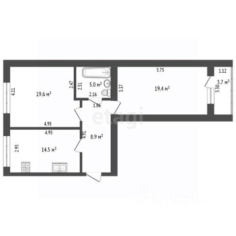 просторный холл 4,7 м.кв. с уже встроенным шкафом купе.