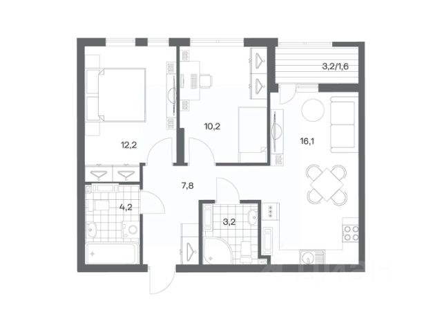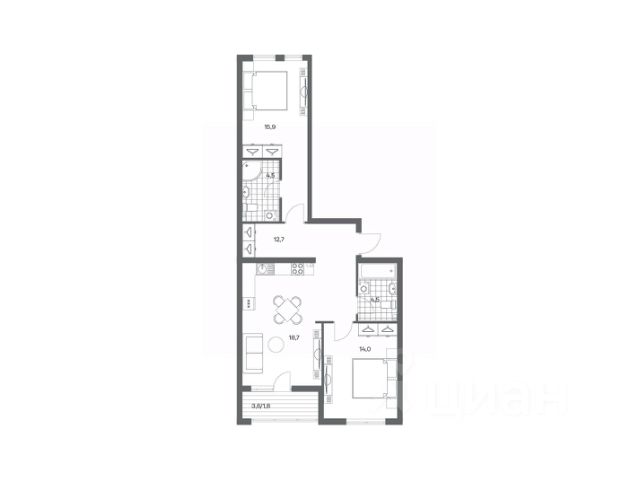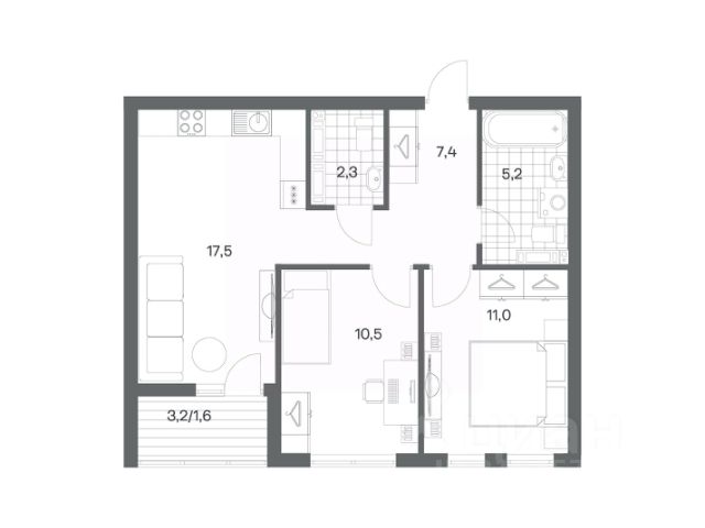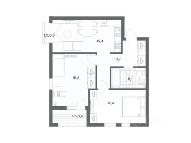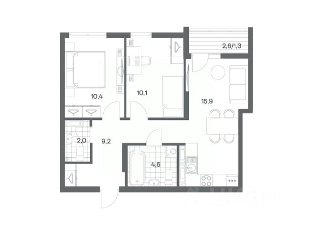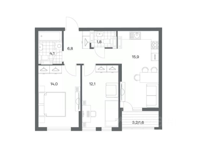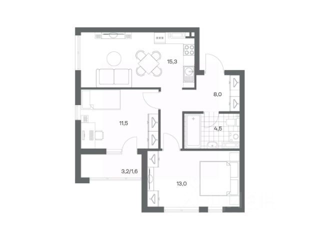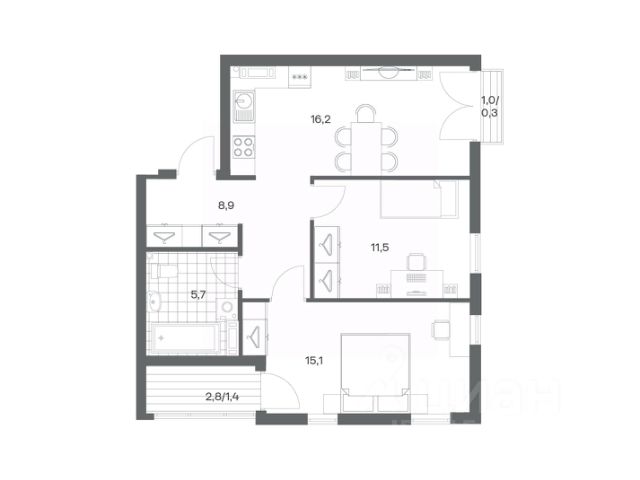 Продается квартира площадью 54.2 м² на 8 этаже 2 секции в Гагарина 30 от компании ГК "ТРЕСТ". Площадь кухни 15.3 м². Жилой комплекс комфорт-класса "Гагарина 30" расположен в Ленинградском районе Калининграда на улице Юрия Гагарина. Жилой комплекс включает в себя три корпуса высотой 9-18 этажей. Срок сдачи намечен на 1 квартал 2028 года. Жилой комплекс расположен в географическом центре города Калининград. Он знаменит Музеем янтаря, Королевскими воротами, Верхним и Нижним прудами, районами Альтштадт и Лебенихт. Из жилого квартала за 10 минут можно добраться до парков Тихий и Кальтхёфер. В жилом комплексе 457 квартир, из них 55% двух- и трёхкомнатные. Доступны варианты с просторными кухнями-гостиными, мастер-спальнями и кладовыми. На первых этажах расположены квартиры с приватными открытыми террасами. На верхних этажах лоджии с холодным остеклением, панорамными и увеличенными окнами. Высота потолков первого и последнего этажей - 3 м (кроме первого корпуса), остальных 2,72 м. Интерьеры МОП-ов выполнены в минималистичном стиле с контрастными, дополняющими друг друга материалами. Благодаря использованию светлых оттенков, природных текстур и декоративного освещения, пространство имеет большое количество света. В лифт-холле предусмотрена зона ожидания с мягкой мебелью. Почтовые ящики вынесены в тамбур, а рядом со стойкой домофона предусмотрена консоль для сумок. Дизайн-проект разработан студией Right design. Для удобства автомобилистов созданы подземные паркинги: на 125 машиномест и кладовые помещения. В паркинг можно будет спуститься на лифте комфортно людям, безопасно автомобилям!