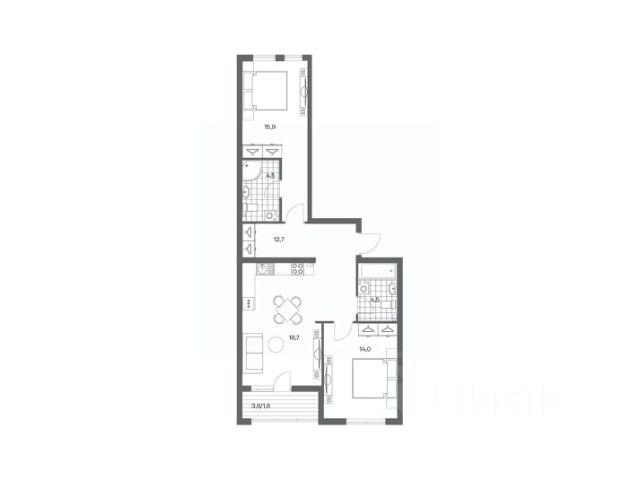 Продается квартира площадью 53 м² на 5 этаже 1 секции в Гагарина 30 от компании ГК "ТРЕСТ". Площадь кухни 16 м². Жилой комплекс комфорт-класса "Гагарина 30" расположен в Ленинградском районе Калининграда на улице Юрия Гагарина. Жилой комплекс включает в себя три корпуса высотой 9-18 этажей. Срок сдачи намечен на 1 квартал 2028 года. Жилой комплекс расположен в географическом центре города Калининград. Он знаменит Музеем янтаря, Королевскими воротами, Верхним и Нижним прудами, районами Альтштадт и Лебенихт. Из жилого квартала за 10 минут можно добраться до парков Тихий и Кальтхёфер. В жилом комплексе 457 квартир, из них 55% двух- и трёхкомнатные. Доступны варианты с просторными кухнями-гостиными, мастер-спальнями и кладовыми. На первых этажах расположены квартиры с приватными открытыми террасами. На верхних этажах лоджии с холодным остеклением, панорамными и увеличенными окнами. Высота потолков первого и последнего этажей - 3 м (кроме первого корпуса), остальных 2,72 м. Интерьеры МОП-ов выполнены в минималистичном стиле с контрастными, дополняющими друг друга материалами. Благодаря использованию светлых оттенков, природных текстур и декоративного освещения, пространство имеет большое количество света. В лифт-холле предусмотрена зона ожидания с мягкой мебелью. Почтовые ящики вынесены в тамбур, а рядом со стойкой домофона предусмотрена консоль для сумок. Дизайн-проект разработан студией Right design. Для удобства автомобилистов созданы подземные паркинги: на 125 машиномест и кладовые помещения. В паркинг можно будет спуститься на лифте комфортно людям, безопасно автомобилям!