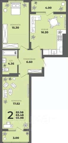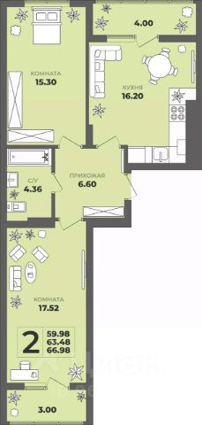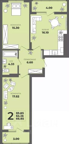 Продаётся 2-комнатная квартира в строящемся доме (Дом 2), срок сдачи: II-кв. 2027, общей площадью 61.73 кв.м., на 6 этаже. ЖК "ГРИНВУД". - Жилой комплекс из двух 8-ми этажных дoмoв - Комфортные и продуманные планировки - Kласc энepгоэффeктивнocти B (выcoкий) - Качественные серый ключ - Автономное газовое отопление. - Лоджии и балконы остеклены (алюминиевые ограждающие конструкции) - Бесшумные грузопассажирские лифты - Качественные и безопасные входные двери - Современное благоустройство двора с детскими и спортивными площадками, местами отдыха взрослых и детей - Ипотека в ВТБ, Банк Санкт-Петербург, Альфа-Банк, Банк Дом РФ ЖК "Гринвуд" находится в экологически чистой части бывшего Балтийского района. Сейчас к этой территории повышенный интерес: здесь нет крупных производств, много зелёных уголков, развитая социальная инфраструктура. Улучшается и транспортная доступность района. В шаговой доступности от ЖК расположена обширная зелёная зоной у озера Пеньковое. Тихое уютное место подарит отдых от городской суеты. При этом рядом находится вся необходимая инфраструктура: детские сады, школы, супермаркеты, рынок, фитнес-центры, салоны красоты, библиотека, торговые центры и остановки общественного транспорта. ЖК "Гринвуд" выполнен в современном архитектурном стиле. На комфортной прилегающей территории предусмотрены места для отдыха взрослых, детские и спортивные площадки, вместительная парковка. В доме также располагаются нежилые помещения различного назначения, так что можно рассчитывать на салоны красоты, аптеки, медицинские центры и магазинчики прямо в ЖК. РЯДОМ: - Озеро "Пеньковое"- Остановка общественного транспорта в 5 минуте ходьбы - Южный рынок - Детский сад 136 - Детская поликлиника 4 - Школа 6 и 56 (2 корпус) - Спортивная школа - Супермаркеты: "Пятерочка", "Вестер" и пр. - Аптеки и медицинские учреждения - АЗС Лукойл