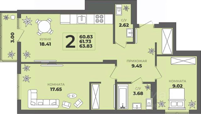 Продаётся 2-комнатная квартира в строящемся доме (Дом 1), срок сдачи: II-кв. 2027, общей площадью 63.48 кв.м., на 7 этаже. ЖК "ГРИНВУД". - Жилой комплекс из двух 8-ми этажных дoмoв - Комфортные и продуманные планировки - Kласc энepгоэффeктивнocти B (выcoкий) - Качественные серый ключ - Автономное газовое отопление. - Лоджии и балконы остеклены (алюминиевые ограждающие конструкции) - Бесшумные грузопассажирские лифты - Качественные и безопасные входные двери - Современное благоустройство двора с детскими и спортивными площадками, местами отдыха взрослых и детей - Ипотека в ВТБ, Банк Санкт-Петербург, Альфа-Банк, Банк Дом РФ ЖК "Гринвуд" находится в экологически чистой части бывшего Балтийского района. Сейчас к этой территории повышенный интерес: здесь нет крупных производств, много зелёных уголков, развитая социальная инфраструктура. Улучшается и транспортная доступность района. В шаговой доступности от ЖК расположена обширная зелёная зоной у озера Пеньковое. Тихое уютное место подарит отдых от городской суеты. При этом рядом находится вся необходимая инфраструктура: детские сады, школы, супермаркеты, рынок, фитнес-центры, салоны красоты, библиотека, торговые центры и остановки общественного транспорта. ЖК "Гринвуд" выполнен в современном архитектурном стиле. На комфортной прилегающей территории предусмотрены места для отдыха взрослых, детские и спортивные площадки, вместительная парковка. В доме также располагаются нежилые помещения различного назначения, так что можно рассчитывать на салоны красоты, аптеки, медицинские центры и магазинчики прямо в ЖК. РЯДОМ: - Озеро "Пеньковое"- Остановка общественного транспорта в 5 минуте ходьбы - Южный рынок - Детский сад 136 - Детская поликлиника 4 - Школа 6 и 56 (2 корпус) - Спортивная школа - Супермаркеты: "Пятерочка", "Вестер" и пр. - Аптеки и медицинские учреждения - АЗС Лукойл