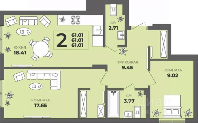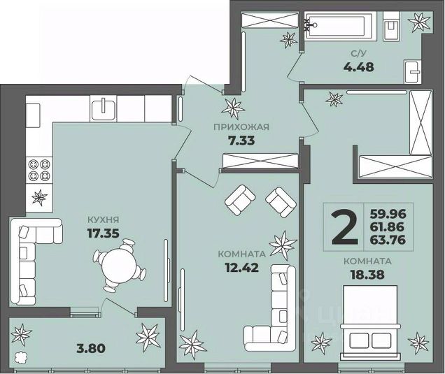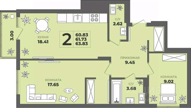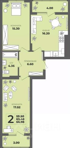 Продаётся 2-комнатная квартира в строящемся доме (Дом 1), срок сдачи: II-кв. 2027, общей площадью 63.48 кв.м., на 5 этаже. ЖК "ГРИНВУД". - Жилой комплекс из двух 8-ми этажных дoмoв - Комфортные и продуманные планировки - Kласc энepгоэффeктивнocти B (выcoкий) - Качественные серый ключ - Автономное газовое отопление. - Лоджии и балконы остеклены (алюминиевые ограждающие конструкции) - Бесшумные грузопассажирские лифты - Качественные и безопасные входные двери - Современное благоустройство двора с детскими и спортивными площадками, местами отдыха взрослых и детей - Ипотека в ВТБ, Банк Санкт-Петербург, Альфа-Банк, Банк Дом РФ ЖК "Гринвуд" находится в экологически чистой части бывшего Балтийского района. Сейчас к этой территории повышенный интерес: здесь нет крупных производств, много зелёных уголков, развитая социальная инфраструктура. Улучшается и транспортная доступность района. В шаговой доступности от ЖК расположена обширная зелёная зоной у озера Пеньковое. Тихое уютное место подарит отдых от городской суеты. При этом рядом находится вся необходимая инфраструктура: детские сады, школы, супермаркеты, рынок, фитнес-центры, салоны красоты, библиотека, торговые центры и остановки общественного транспорта. ЖК "Гринвуд" выполнен в современном архитектурном стиле. На комфортной прилегающей территории предусмотрены места для отдыха взрослых, детские и спортивные площадки, вместительная парковка. В доме также располагаются нежилые помещения различного назначения, так что можно рассчитывать на салоны красоты, аптеки, медицинские центры и магазинчики прямо в ЖК. РЯДОМ: - Озеро "Пеньковое"- Остановка общественного транспорта в 5 минуте ходьбы - Южный рынок - Детский сад 136 - Детская поликлиника 4 - Школа 6 и 56 (2 корпус) - Спортивная школа - Супермаркеты: "Пятерочка", "Вестер" и пр. - Аптеки и медицинские учреждения - АЗС Лукойл