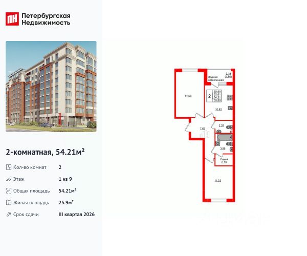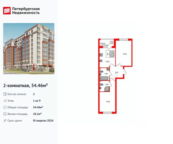 Продается уютная 2-комнатная квартира от застройщика в жилом комплексе "Консул" в Ленинградском районе. Удобная, классическая планировка, кухня 10.82 м², вместительная прихожая 5.92 м². Общая площадь квартиры - 54.14 м², жилая 28.2 м², высота потолка 2.7 м. Квартира продается с отделкой "Серый ключ с возможностью дозаказа NORD LINE ++". Что особенного в ЖК "Консул"? • Развитая инфраструктура • Двор без машин • Закрытая, огороженная территория • Квартиры с отделкой - заезжай и живи • Детские площадки для детей разных возрастов • Подземный паркинг и кладовые помещения