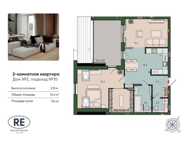 Прямая продажа от застройщика! ЖК "Вдохновение" - вторая очередь ЭКОквартала "Русская Европа". Срок сдачи IV квартал 2026 года. Впечатляющие квартиры с отделкой WHITE BOX, потолками 3,15 м и панорамным WOW-видом на парк. Уникальные преимущества: - Большой выбор современных планировок; - Собственная терраса и сауна в каждой квартире; - Автономное отопление и энергоэффективные системы; - Закрытая охраняемая территория с системой Smart-доступа; - Общественные пространства и гриль-зоны на крыше каждого подъезда; - Ландшафтный парк во дворе с уютными аллеями с зонами отдыха, детскими и спортивными площадками; - Подземный паркинг и кладовые в каждом доме. Расположение комплекса: ЖК "Вдохновение" находится в престижном Ленинградском районе Калининграда в15 минутах от центра города. Удобный выезд на побережье Балтийского моря (25 минут) и в аэропорт (20 минут). Рядом остановка общественного транспорта. О проекте: ЭКОквартал "Русская Европа" ежегодно признается одним из лучших жилых комплексов России и отмечен знаком "Жилой комплекс 1 г. Калининград (рейтинг ЕРЗ.РФ). Это безупречное решение для тех, кто не боится лидерства и высоты, не ищет простых путей, держит высокую планку во всем, не останавливается на достигнутом и живет в ритме мегаполиса. Полная социальная инфраструктура на территории комплекса: - Новая школа; - Детский сад; - Детская поликлиника. Горящие предложения: - Рассрочка 0% на период строительства; - Семейная ипотека 3,5% на весь срок; - Ипотека для IT-специалистов 4.2% . Больше подробностей о квартирах жилого комплекса "Вдохновение" и уникальное предложение для вашего бюджета - по телефону отдела продаж! Звоните!