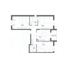 Продается квартира площадью 70.2 м² на 1 этаже 1 секции в River Park от компании ГК "ТРЕСТ". Площадь кухни 12.6 м².