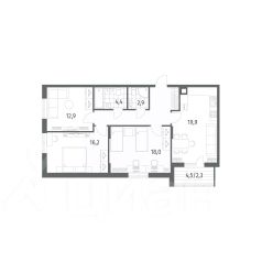 Продается квартира площадью 72.5 м² на 2 этаже 1 секции в River Park от компании ГК "ТРЕСТ". Площадь кухни 15.2 м².