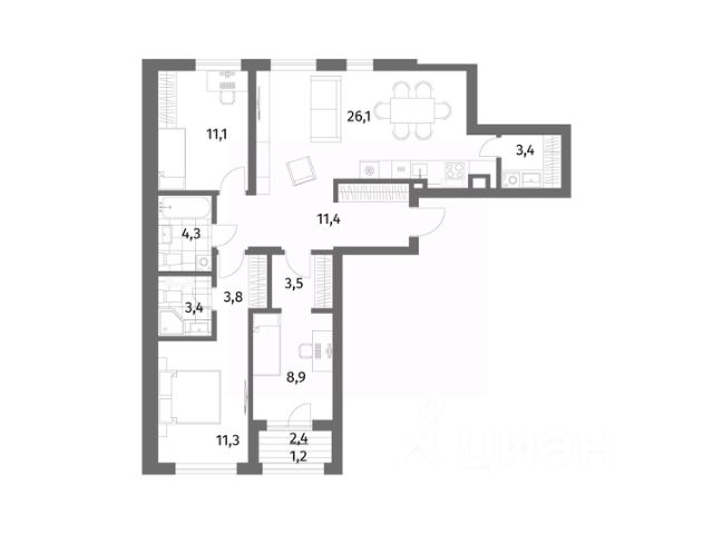 В квартире почти остается вся мебель и техника. Бытовая техника: варочная поверхность, духовой шкаф, холодильник, стиральная и посудомоечная машина.