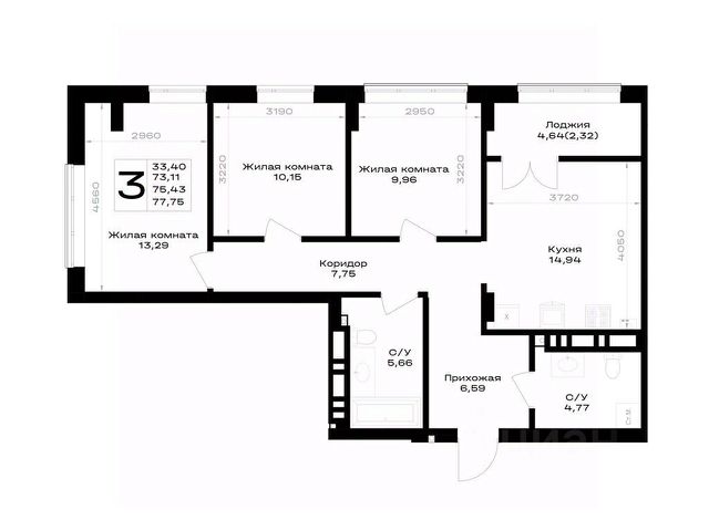Площадь комнат 13,09+11,46+11,59 кв.м.