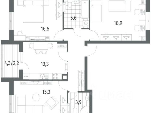 ГРАМОТНАЯ ПЛАНИРОВКА! Все комнаты изолированы, окна на разные стороны.