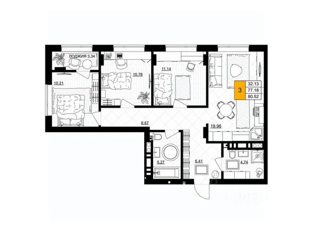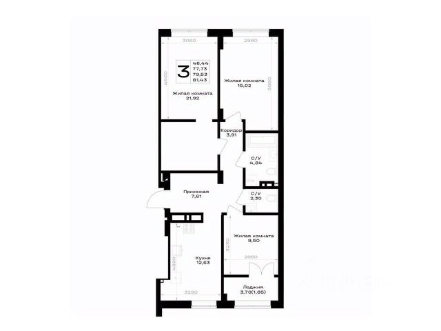 Наличие квартир с террасами и мастер спальнями в ЖК предоставляет жителям дополнительные преимущества и возможности для комфортного и уютного проживания. Кв 3-комнатная квартира, примерная площадь 80 м2 в Гурьевске.
