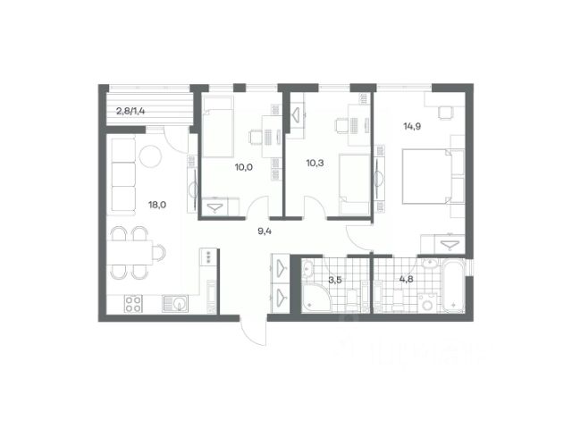 Продается квартира площадью 72.3 м² на 8 этаже 5 секции в Гагарина 30 от компании ГК "ТРЕСТ". Площадь кухни 18 м². Жилой комплекс комфорт-класса "Гагарина 30" расположен в Ленинградском районе Калининграда на улице Юрия Гагарина. Жилой комплекс включает в себя три корпуса высотой 9-18 этажей. Срок сдачи намечен на 1 квартал 2028 года. Жилой комплекс расположен в географическом центре города Калининград. Он знаменит Музеем янтаря, Королевскими воротами, Верхним и Нижним прудами, районами Альтштадт и Лебенихт. Из жилого квартала за 10 минут можно добраться до парков Тихий и Кальтхёфер. В жилом комплексе 457 квартир, из них 55% двух- и трёхкомнатные. Доступны варианты с просторными кухнями-гостиными, мастер-спальнями и кладовыми. На первых этажах расположены квартиры с приватными открытыми террасами. На верхних этажах лоджии с холодным остеклением, панорамными и увеличенными окнами. Высота потолков первого и последнего этажей - 3 м (кроме первого корпуса), остальных 2,72 м. Интерьеры МОП-ов выполнены в минималистичном стиле с контрастными, дополняющими друг друга материалами. Благодаря использованию светлых оттенков, природных текстур и декоративного освещения, пространство имеет большое количество света. В лифт-холле предусмотрена зона ожидания с мягкой мебелью. Почтовые ящики вынесены в тамбур, а рядом со стойкой домофона предусмотрена консоль для сумок. Дизайн-проект разработан студией Right design. Для удобства автомобилистов созданы подземные паркинги: на 125 машиномест и кладовые помещения. В паркинг можно будет спуститься на лифте комфортно людям, безопасно автомобилям!