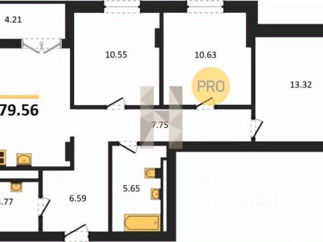 Продается квартира площадью 75.1 м² на 1 этаже 2 секции в River Park от компании ГК "ТРЕСТ". Площадь кухни 21.6 м².